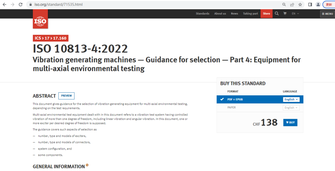 該項目于2016年4月由北京強度環境研究所在國際標準委提出提案,經過三年的籌備,于2019年7月經國際標準委批復正式立項,并成立項目組。標準立項后,項目團隊總結了北京強度環境研究所及航天希爾公司在多軸振動試驗裝備研制的經驗,并對關鍵技術進行了研究和總結,先后編寫了NP、WD、CD、DIS和FDIS等五個階段的標準草案,經過來自英國、日本、俄羅斯、美國、丹麥、瑞典等國家專家代表幾十次郵件的質詢、兩次國際會議現場審閱、三次線上會議審閱和四次ISO技術委員會投票,最終標準于2022年4月28日成功發布。現標準已可通過ISO官方網站進行查詢和購買。